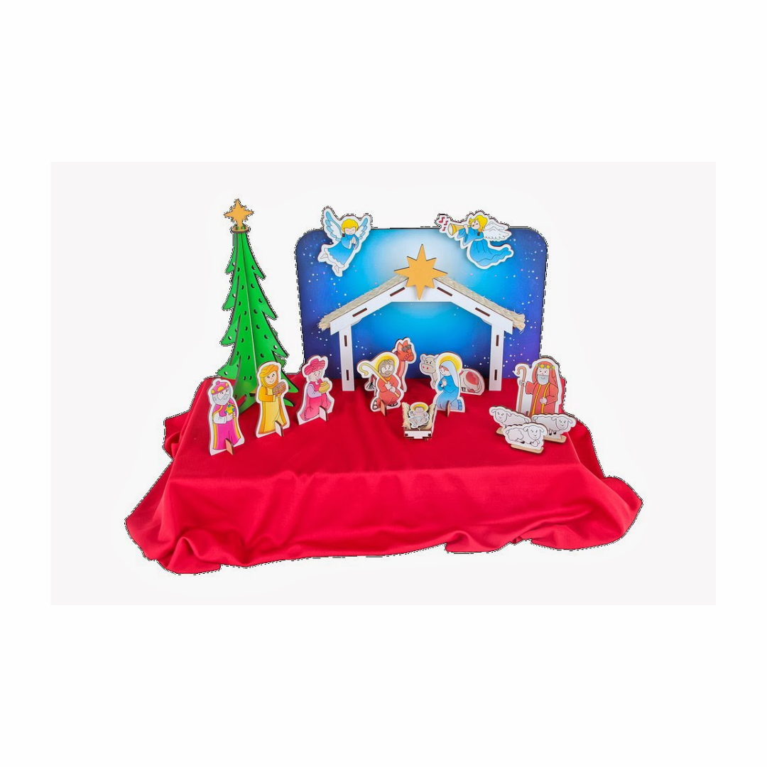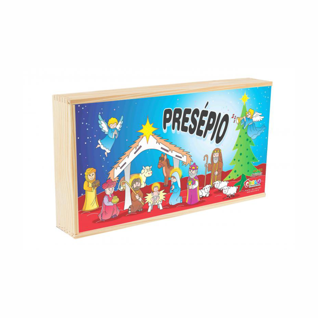 - O Presépio é mais que um símbolo natalino. Representa o Nascimento de Jesus e convida a humanidade a aprender que na simplicidade e na pobreza, Deus nos ensina a possibilidade humana de amar sem exigências. Confeccionado em M.D.F. possui 12 personagens recortados a laser, 1 manjedoura, 1 árvore de natal e 1 manta vermelha.